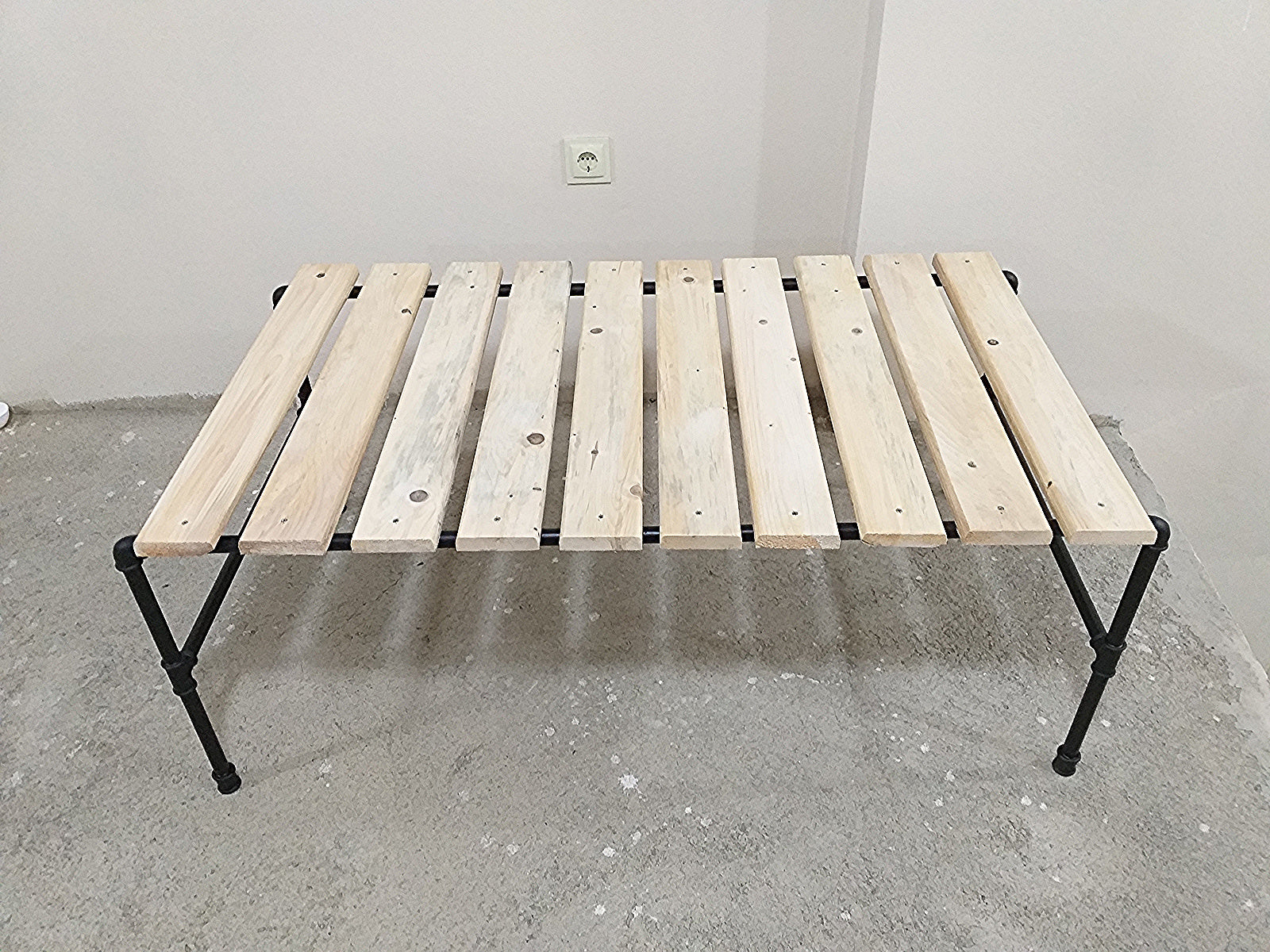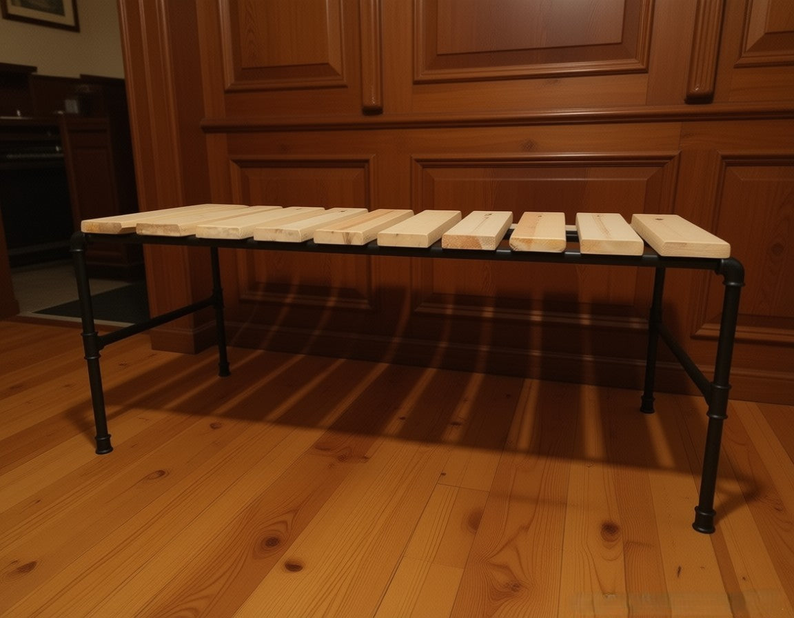 Bring rustic charm and versatile functionality to your space with this handmade wooden bench. Crafted from natural solid wood planks and supported by a durable industrial-style black iron pipe frame, this bench is both practical and stylish.