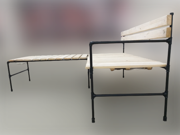 Decorative Divan Seat Bench Corner Set; 1st part Width: 70 cm, Length: 165 cm, Height: 90 cm (back), Height: 50 cm (Seat); 2nd part Width: 70 cm, Length: 125 cm, Height 50 cm; Carrier skeleton is 1/2 "diameter black matte painted Iron Pipe and the seat part is plain Natural Wood. - It can be used in parks, gardens, balconies, terraces as well as in offices or workplaces for decoration purposes.