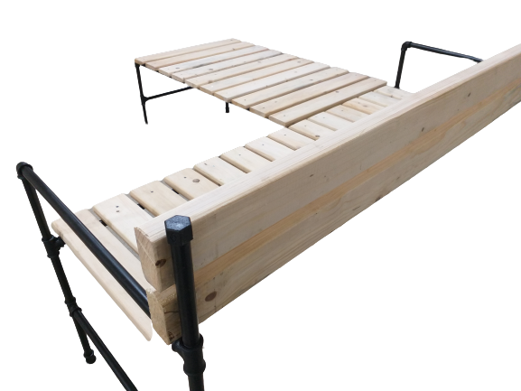 Crafted from solid natural wood planks and supported by a sturdy industrial pipe frame, this set offers durability and timeless rustic charm. Whether you use the smaller bench as a stand-alone piece, a dining bench, or as an extension to the backrest model, this versatile combo adapts to your needs.