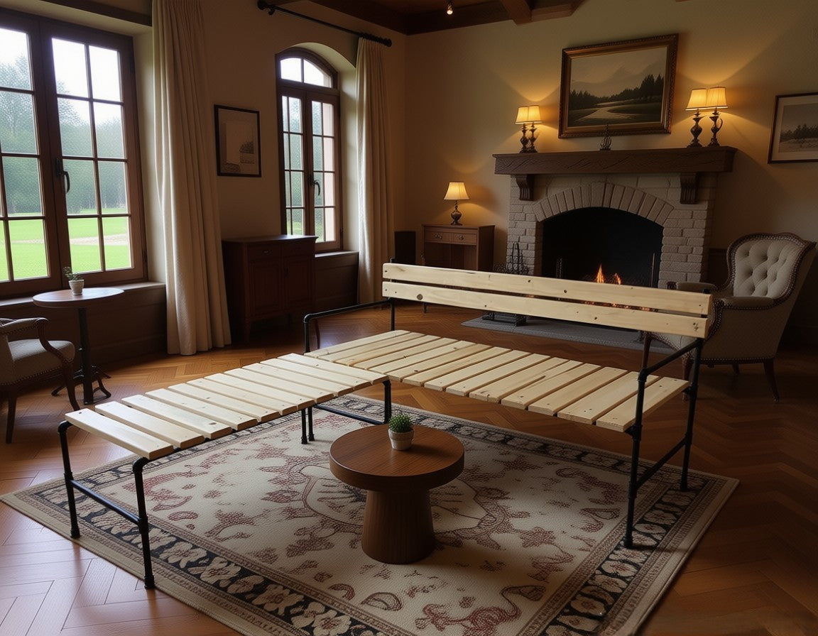Rustic Wooden Corner Bench Set – Handmade Industrial Seating