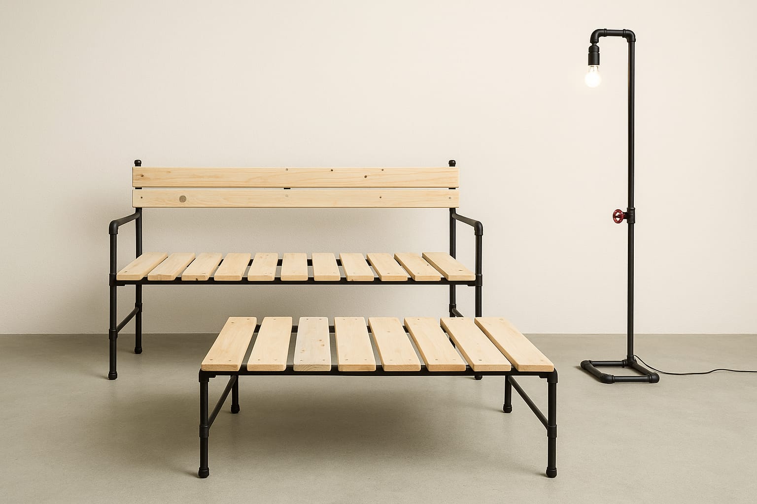 Handmade Rustic Wooden Bench – Industrial Pipe Base Multi-Purpose Solid Seating & Coffee Table